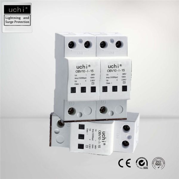 Surge protectors OBV10-I-15 meet the type 1 requirement class according to IEC 61643-11. These devices protect low-voltage consumer systems from overvoltages of all types and are available in single-pole to four-pole versions.The voltage-limiting,high-performance spark gaps provide several benefits.A short response time, a low protection level and high current leakage capability with long service life.